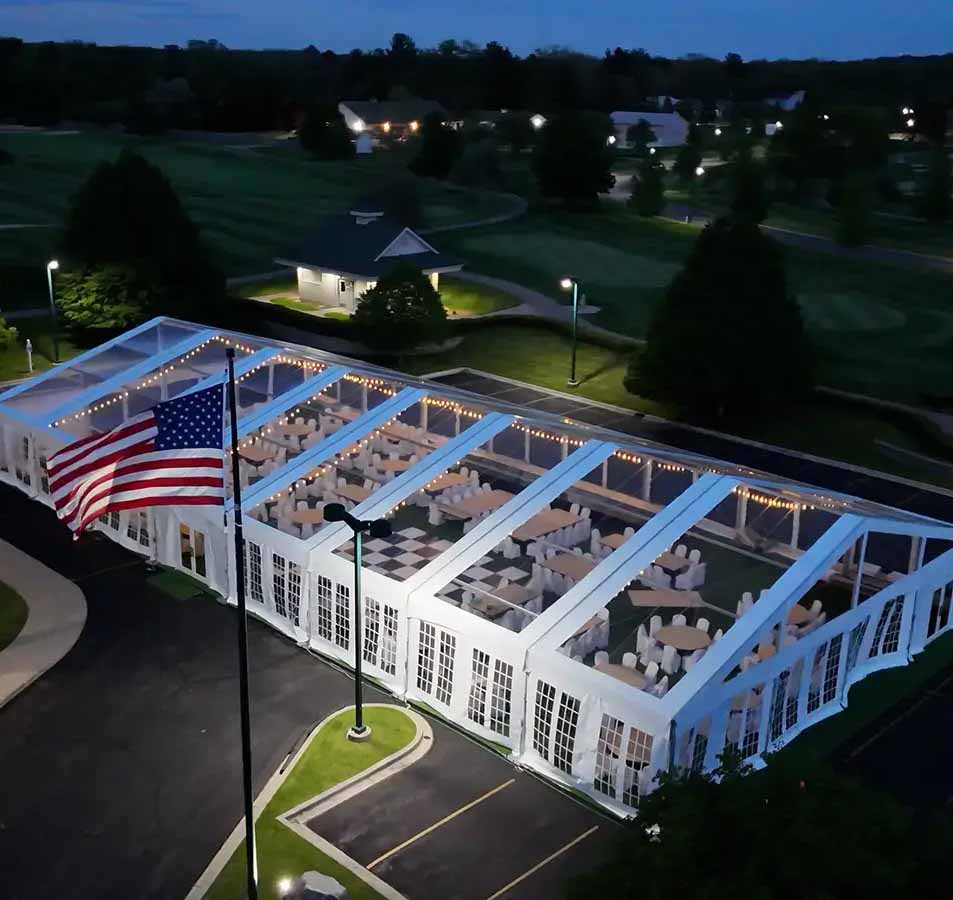 Tents, staging, tables, chairs, and lighting for corporate events, picnics, and galas in Wayne County. Professional delivery and setup.